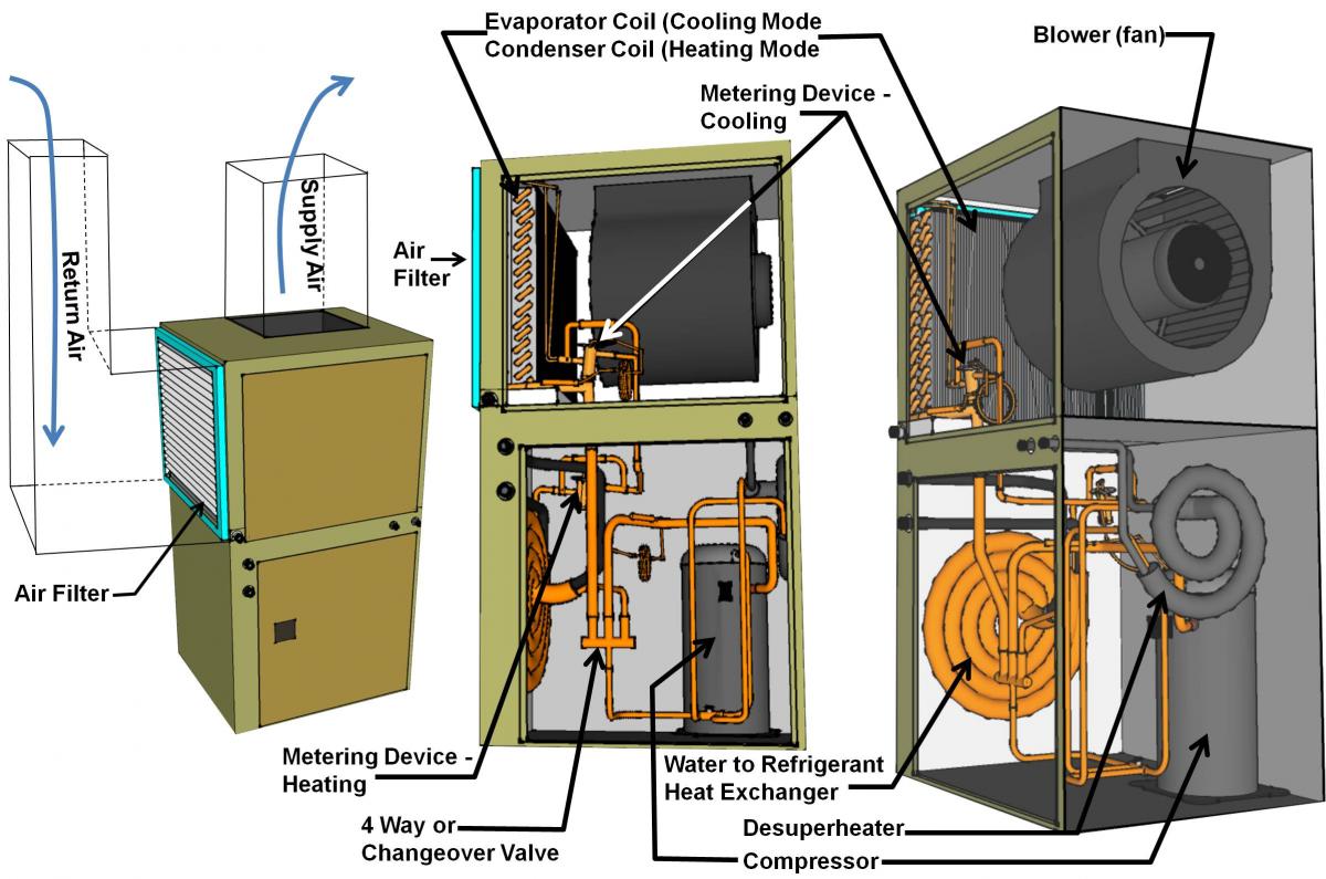 Clossed Loop (vertical and horizontal) Open Loops (water to water), Pumping and piping network to heat pumps.